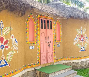 Traditional village-style huts offering a cozy stay experience. Includes Lunch, Hi-Tea, Dinner & Next Day Breakfast, swimming pool access, cultural experiences and adventure activities.