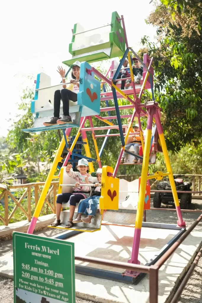 Yes! Monteria Village is very family-friendly. Kids enjoy the Train Ride, Ferris Wheel (for children below 8 years), Anganwadi, Anand Mela games, Gaushala, swimming pool and many more activities. Special pricing applies for kids aged 5–12 years.